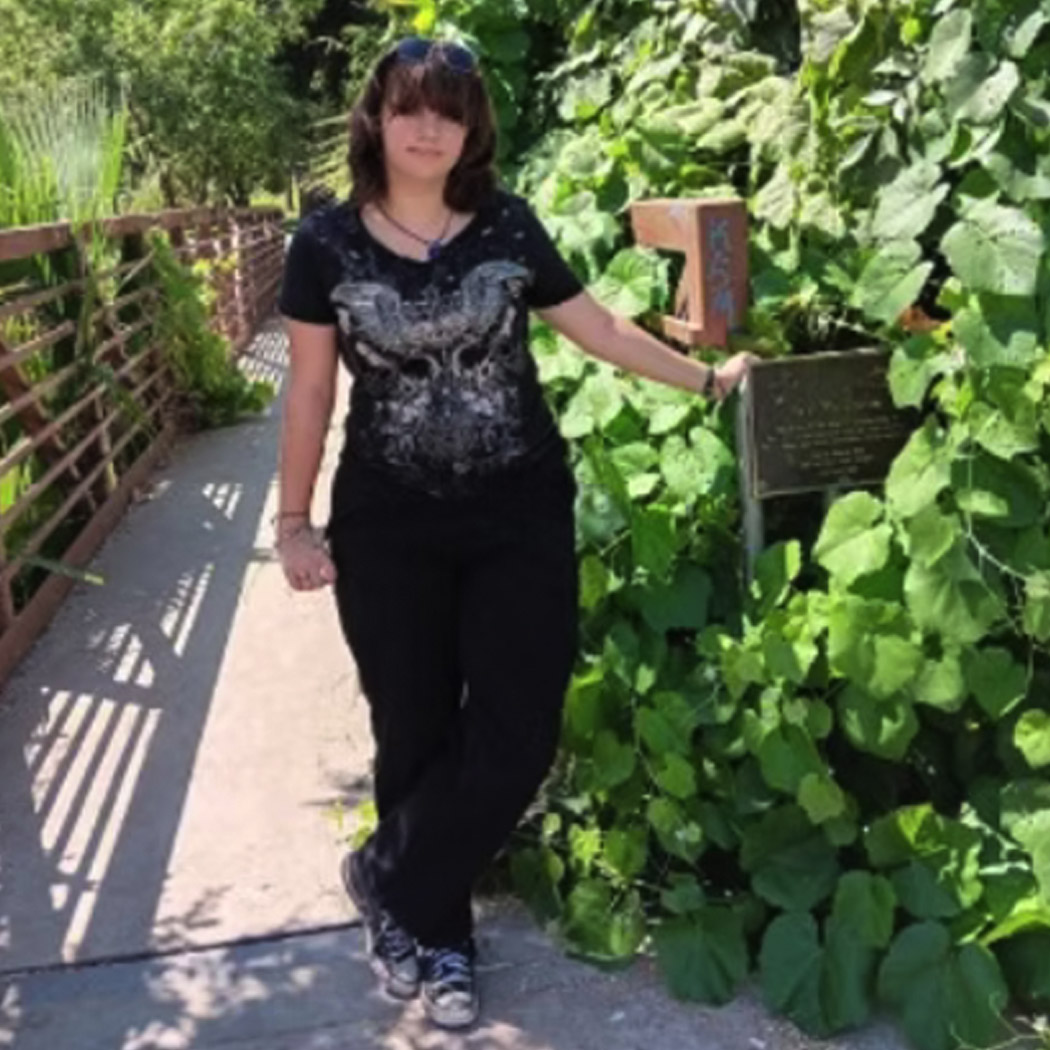 Pictured in front of a bridge remembrance sign for Paul Woollomes at Hart Park located in
